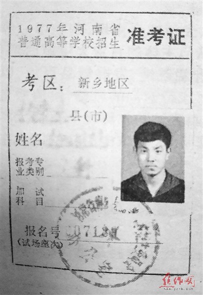 一九七七年,我市一考生的準(zhǔn)考證
