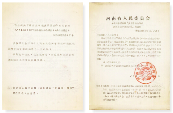 《關于撤銷焦作礦區設置焦作市的決定》原文件