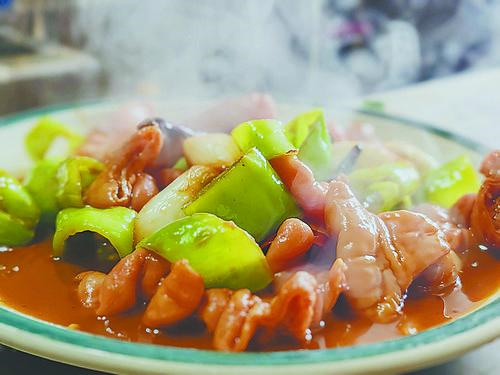 老王的菜單并不復(fù)雜。“家常味,食材好,這是根本。”老王說(shuō)。紅燒大腸,老王會(huì)把大腸處理得干干凈凈,每一個(gè)地方都不放過(guò)。清洗、焯水、鹵制,每一個(gè)步驟都嚴(yán)格把控。蔥、姜、蒜等一起爆炒,瞬間濃郁的香味就彌漫開(kāi)來(lái),勾得人直咽口水。吃上一口,軟糯中帶著恰到好處的嚼勁,大腸的香味在口腔中肆意綻放,讓人欲罷不能。