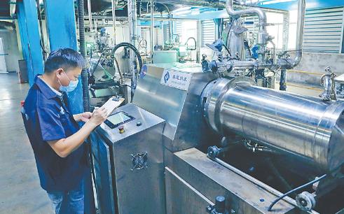 8月23日,焦作集越納米材料技術有限公司生產車間,技術人員在輔助生產設備進行有序生產。該公司是一家集研發、生產、銷售于一體的高新技術企業,專業生產碳納米管、石墨烯及以其為主要組分的復合導電漿料。該公司大膽開拓,勇于創新,使企業成為河南省首家成功實現將碳納米管作為導電劑批量應用于3C數碼領域的行業先行者。
