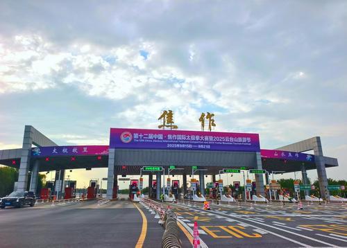 迎賓路高速路口被裝扮得煥然一新,為“一賽一節”營造濃厚氛圍。 閆 利 攝