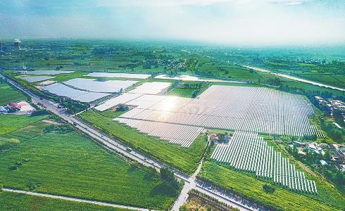 8月29日,在馬村區安陽城街道山后村拍攝的光伏電站場景。目前,這里建有焦作中暉50兆瓦光伏電站項目和河南中科田園農業科技有限公司農光互補項目,上部光伏發電,下部種植蔬菜、中草藥等,發電種植兩不誤,為當地經濟可持續發展注入了新動能。