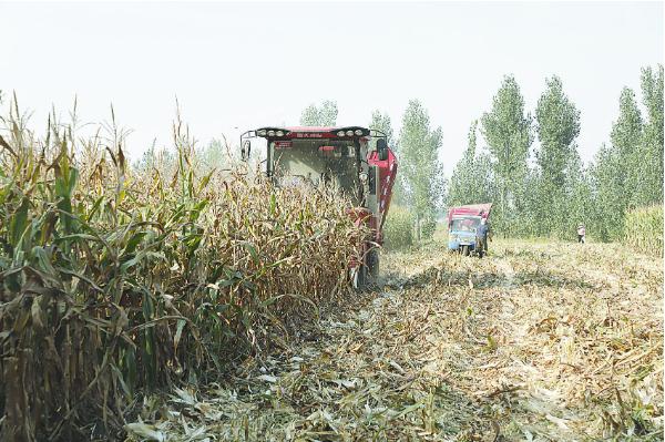 9月24日,一輛玉米收獲機在溫縣武德鎮田間收獲玉米。 馬思遠 攝