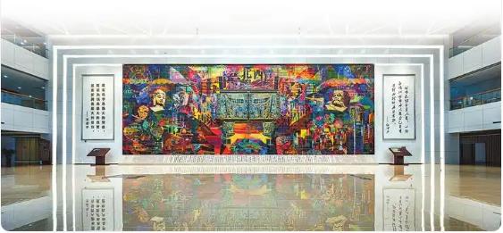 一入大門,氣勢(shì)恢宏的巨型三彩環(huán)藝壁畫《洛陽(yáng)》便映入眼簾,它出自中國(guó)工藝美術(shù)大師郭愛(ài)和之手,打破了人們對(duì)傳統(tǒng)三彩的固有認(rèn)知。壁畫中,“五都薈洛”“五路通洛”“五水融洛”“五業(yè)興洛”等元素,生動(dòng)詮釋了洛陽(yáng)厚重的歷史文化與充滿希望的未來(lái)愿景。