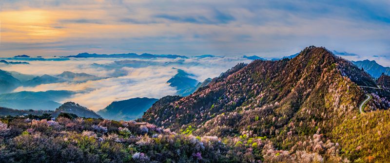 這是河南省新縣黃毛尖山,大別山主峰之一(2023年4月8日攝,無人機照片)。新華社發(韓家東 攝)