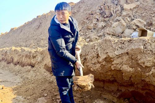 圖③ 郭新林挖采黃河泥印用的膠泥。