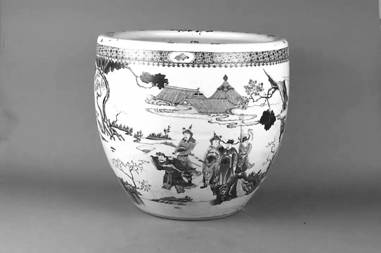 器型雖碩大,但精巧別致。這是清代五彩人物故事紋瓷缸留給參觀者的印象。