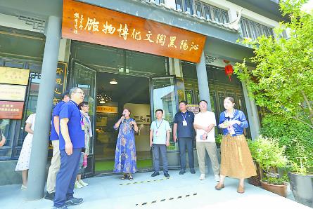 沁陽黑陶有近五千年的悠久歷史,有著‘黑如漆、明如鏡、薄如紙、硬如瓷’的美稱,是懷川文化元素的代表之一。在神農黑陶傳承人、河南神農陶文化創意有限公司總經理湯麗的介紹下,專家團成員走進富有江南園林風格的園子里。一磚一瓦,一陶一木,一門一牌,一場一景,都讓人感受到了黑陶的神韻和豐富的內涵。