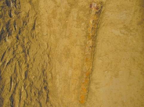 那么,與之緊鄰的1號陪葬墓有沒有發掘出什么文物呢?該考古隊員向本報記者透露,目前已經從1號墓里挖出一把寶劍,為墓主人佩帶的細長鐵劍,劍身長50多公分,并有劍鞘,雖鐵銹斑斑,但整體上保存完整,甚為鮮見!爱敃r從土里挖出來之后,為了安全起見,劍上的土沒有清理,立即就用石膏包裹固定好了,如今保存在安豐鄉敬老院內!