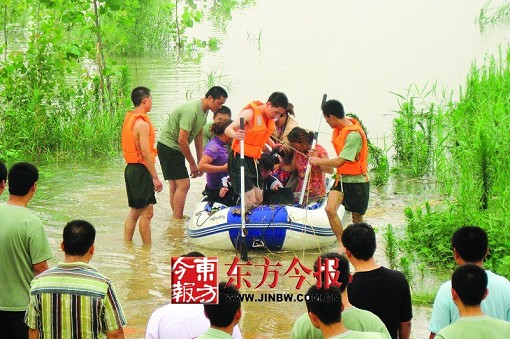 8點10分,第一批5名被困女村民靠了岸。隨后的7名男村民分兩批也被救了出來。獲救后,陸小菊對營救人員說:“俺種地的不會說啥話,就是打心里感謝你們。”