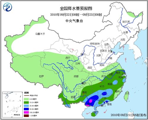 21日08時至22日08時,新疆西部、西藏大部、青海東部和南部、西北地區中東部、內蒙古東北部、東北大部、華北大部、黃淮、江淮、江漢、江南大部、華南、西南地區大部等地有小到中雨或陣雨,其中,湖南、廣東、廣西大部、海南東部、貴州東部及福建南部等地將有大到暴雨,湖南西南部、廣西東部、廣東中南部的部分地區有大暴雨,局地有特大暴雨。另外,四川盆地西部、河南南部、蘇皖北部、河北南部等地的部分地區有大雨,局地有暴雨。上述地區局部并伴有短時雷雨大風或冰雹等強對流天氣。西北地區東部、內蒙古大部、東北、華北北部等地有4~6級風。渤海、黃海北部和中部海域將有7~8級、陣風9~10級東北風;黃海南部海域將有4~5級西南風轉7~8級、陣風9級的東北風。