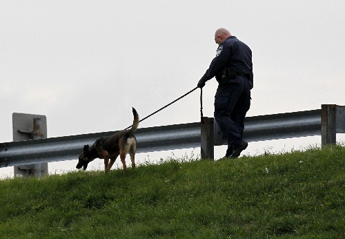 10月19日,調查人員在美國華盛頓五角大樓附近搜尋證物。新華社/美聯