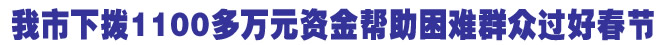 本報(bào)訊(記者 李新和)記者昨日從市民政局獲悉,在新春佳節(jié)即將來臨之際,為確保我市城鄉(xiāng)低保對(duì)象、農(nóng)村五保對(duì)象、重點(diǎn)優(yōu)撫對(duì)象、特困殘疾人和特困職工等困難群眾過一個(gè)歡樂祥和的春節(jié),市委、市政府近日出臺(tái)關(guān)于對(duì)困難群眾開展社會(huì)幫扶救助的意見,決定下?lián)?100多萬元資金救助困難群眾,幫助困難群眾過好春節(jié)。