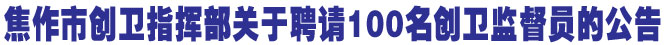焦作市創衛指揮部關于聘請100名創衛監督員的公告