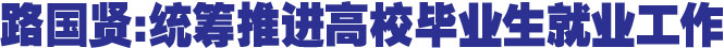 路國賢強調,要統籌推進高校畢業生就業工作。既要加強政府指導,又要注意市場主導,最大限度地發揮市場配置資源和政府調控就業的作用,完善市場服務體系、信息網絡體系和就業幫扶體系;既要加強政策扶持,又要鼓勵社會支持,充分調動各方面的積極性、主動性,形成解決高校畢業生就業問題的濃厚氛圍,形成全社會共同關心支持高校畢業生就業的良好局面;既要積極促進就業,又要大力推動創業,把扶持創業作為促進就業的重要手段,加強對高校畢業生創業的教育培訓和創業扶持,努力形成以創業促就業的良好局面;既要堅持思想引導,又要加強就業培訓,加強對學生就業知識的輔導,幫助學生掌握就業知識、彌補能力不足,不斷增強適應社會的能力;既要立足當前,又要著眼長遠,建立完善就業長效機制,各級各部門在安排政府投資和確定重大建設項目時,要把創造更多新的就業崗位放在重要位置,實行項目就業論證制度,吸納更多的高校畢業生就業。