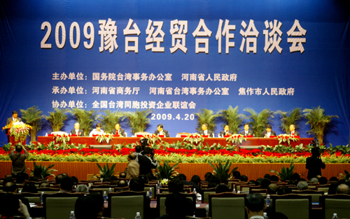 今天(4月20日)上午,2009豫臺(tái)經(jīng)貿(mào)合作洽談會(huì)在焦作隆重開(kāi)幕。省委書(shū)記、省人大常委會(huì)主任徐光春,省委副書(shū)記、省長(zhǎng)郭庚茂對(duì)09豫臺(tái)經(jīng)貿(mào)合作洽談會(huì)暨全國(guó)臺(tái)企聯(lián)第一屆會(huì)員代表大會(huì)第三次會(huì)議召開(kāi)發(fā)來(lái)賀信。省委常委、統(tǒng)戰(zhàn)部長(zhǎng)劉懷廉,國(guó)務(wù)院臺(tái)灣事務(wù)辦公室副主任孫亞夫、全國(guó)臺(tái)灣同胞投資企業(yè)聯(lián)誼會(huì)會(huì)長(zhǎng)張漢文出席開(kāi)幕式,副省長(zhǎng)宋璇濤主持。來(lái)自河南省18個(gè)省轄市以及招商部門(mén)的負(fù)責(zé)同志、臺(tái)商共500多人參加了會(huì)議。