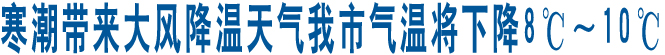 本報訊 (記者王愛紅) 寒潮來了,未來兩天我市將出現大風降溫天氣,降溫幅度在8℃~10℃,平均風力在5級左右,陣風7級以上。