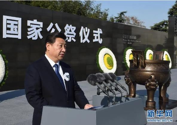 2014年12月13日上午,中共中央、全國(guó)人大常委會(huì)、國(guó)務(wù)院、全國(guó)政協(xié)、中央軍委在南京隆重舉行南京大屠殺死難者國(guó)家公祭儀式。中共中央總書記、國(guó)家主席、中央軍委主席習(xí)近平出席并發(fā)表重要講話。新華社記者 李學(xué)仁 攝