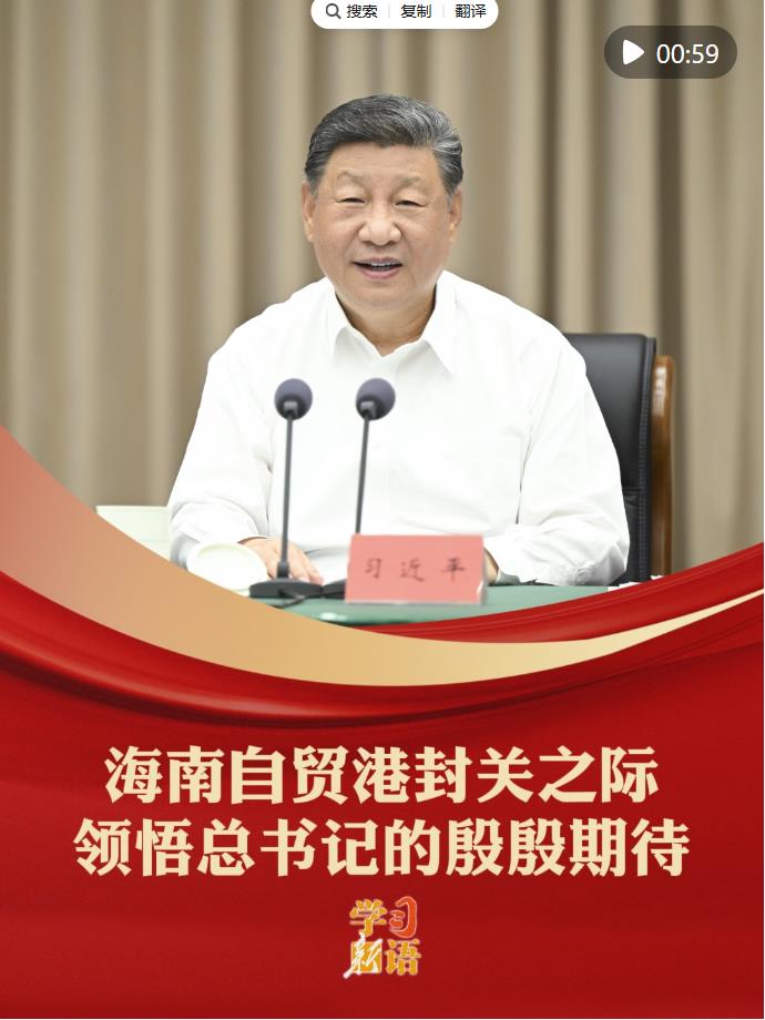 12月18日,海南自由貿易港正式啟動全島封關。建設海南自由貿易港,是習近平總書記親自謀劃、親自部署、親自推動的改革開放重大舉措。封關之際,讓我們領悟習近平總書記的殷殷期待,為把海南自由貿易港打造成為引領我國新時代對外開放的重要門戶加油。