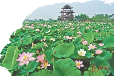 “接天蓮葉無窮碧,映日荷花別樣紅”的AAAA級荷美覃塘景區。 (圖片由貴港日報社提供)