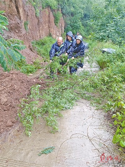 暴風(fēng)驟雨吹倒樹(shù)木堵路,龍翔街道許河村黨員干部迅速出動(dòng),及時(shí)處理主干道上的倒樹(shù)斷枝,確保轄區(qū)居民出行安全。(本欄照片均由中軒攝)