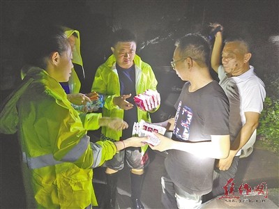 李封街道領(lǐng)導(dǎo)班子夜查風(fēng)險(xiǎn)隱患,并為在崗防汛人員準(zhǔn)備了充足的食物、水和防雨物資。