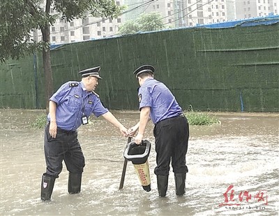 在處置險情中,該所管理二隊隊長王繼紅,巾幗不讓須眉。前幾天,在暴雨中,為了緊急疏通被堵塞的下水道,她與隊員們用手一把把撈出雜物,保障了行人的安全。