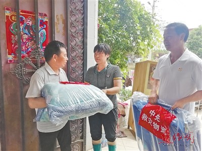在該村村民崔和平家,記者看到墻壁上仍有被水淹過的痕跡,在水中泡過的家具有的已經發霉,院內外晾曬的衣物隨處可見。看著村干部送來的折疊床、毛毯等救災物資,腿腳不便的崔和平不禁紅了眼眶,激動地說:“之前政府安排我們撤離到安置點,現在中央又發放救災物資,真的太感謝了。”