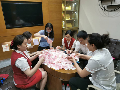 在了解到企業因洪水浸泡的164萬現金無法處置的困境后,中信銀行安陽解放大道支行第一時間協調同城支行網點的3臺現金消毒柜,送往企業協助其開展現金烘干、消毒等工作。由于大量現金紙幣受損嚴重,已不再適合流通,為解決企業現金流動性難題,支行行長帶領3名運營人員、3名零售人員及企業財務人員攜帶現金到支行網點進行除濕、烘干、清點、兌換。與此同時,支行會計經理也在第一時間向安陽分行運營部匯報情況,并積極協調分行營業部現金庫籌措資金。由于時間緊、任務重,全體支行員工午餐亦簡餐,放棄午休,同時啟動3臺現金消毒柜、3個電吹風機、2臺點鈔機、1臺現金清分機,區分濕幣、潮幣、干幣三個程度進行流水線作業,經過7個小時爭分奪秒的不間斷工作,最終高效、無誤地為客戶完成了164萬元的現金兌換。為保障客戶人身財產安全,為客戶安排專程車輛回到廠區。