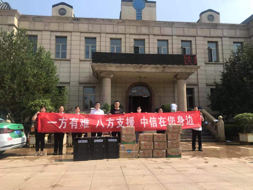 在了解到相關情況后,7月25日,中信銀行安陽解放大道支行全體員工犧牲假日休息時間,在支行長的帶領下,分工協作,內外堅守,在災后第一時間向受災企業送去一次性口罩、消毒液、酒精等防疫物資。