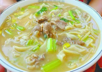 “以新鮮的羊肉做羊肉熗鍋面味道會更好,再用羊排、羊骨熬制羊湯,味道十分鮮美,還沒有一點羊膻味兒。”何利平說,蔥油、面油也都是店里秘制的。做熗鍋面的時候,取鍋燒油,將蔥姜蒜爆香,然后將羊肉放入煸炒一下,再把羊湯倒進去,大火煮開后,放入面條,煮至快要熟時,放入黃豆牙、青菜,出鍋前再撒些蔥花,那味道別提多美了。