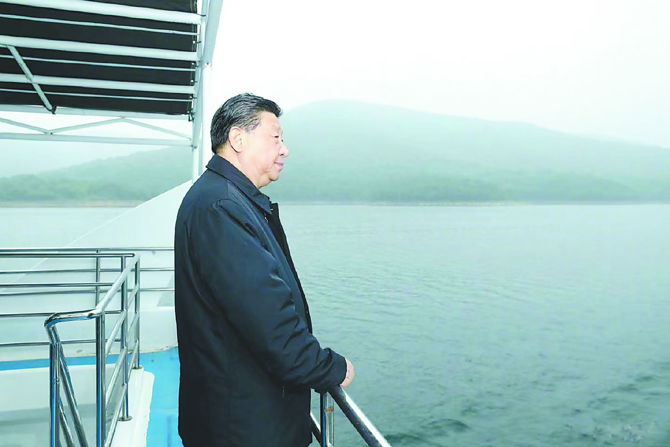 2021年5月14日上午,中共中央總書記、國家主席、中央軍委主席習近平在河南省南陽市主持召開推進南水北調(diào)后續(xù)工程高質(zhì)量發(fā)展座談會并發(fā)表重要講話。這是座談會前,習近平于13日在南陽市淅川縣乘船考察丹江口水庫。