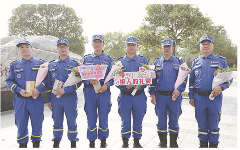 “藍天”隊員楊三豐手捧著牡丹花,心情激動地說:“今后,我們‘藍天’將繼續秉承發揚人道、博愛、奉獻的志愿精神,始終堅持公益方向,全力以赴守護群眾生命安全。”